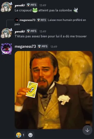 Mais Meganess ne lĂąche rien, rĂ©pondant avec un UNO Reverse incarnĂ© par DiCaprio lui-mĂȘme.
