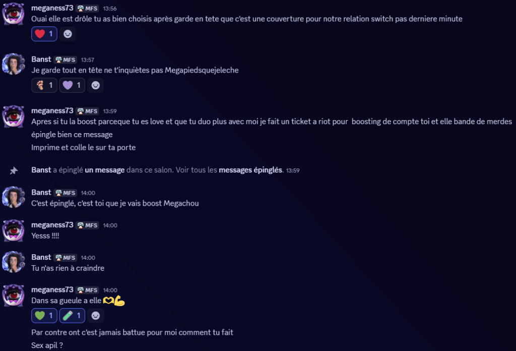 Dans une conversation privĂ©e, Meganess et Banst s’expliquent