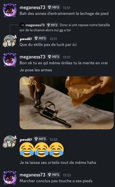 “Je te laisse ses orteils tout de mĂȘme haha.” – Yuriko