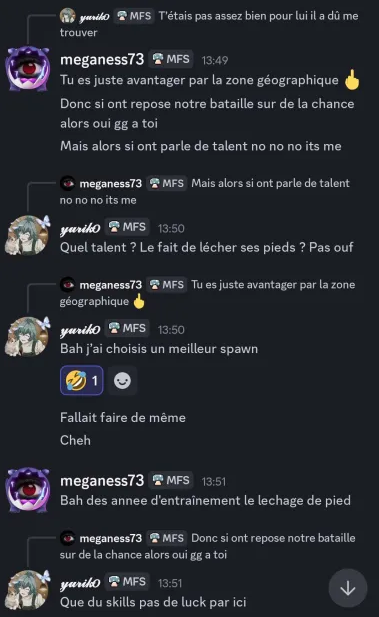 “Tu es juste avantagĂ© par la zone gĂ©ographique 🖕.” – Meganess